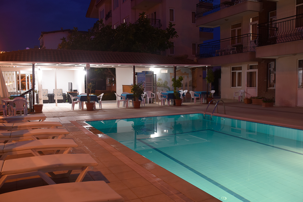 Sahile 300 metre mesafede bulunan plajımızda ücretsiz şezlong, şemsiye hizmetimiz bulunmaktadır, otelimiz çevresinde hertürlü alış-veriş imkanı, restaurant, bar ve eğlence mekanları bulunmaktadır. Şehir dağ, deniz manzaralıdır. Evcil hayvan kabul edilmez.
