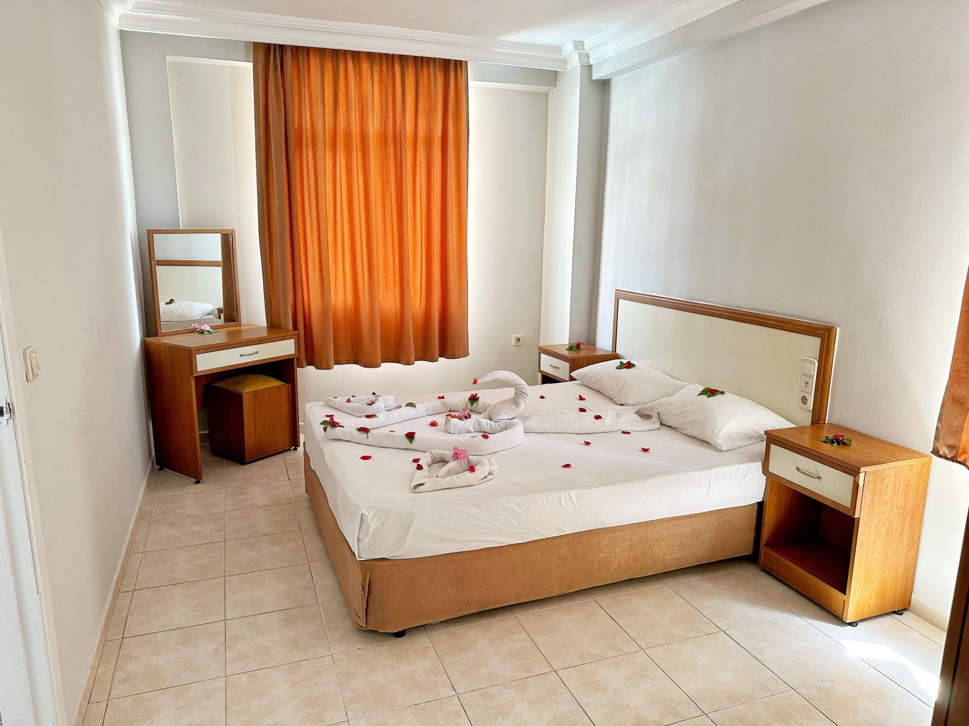 APART DAIRELER 1+1 OLUP 36 M2 OLUP 4 KIŞI KONAKLAYABILIR. STANDART ODALARIMIZ 26 M2 OLUP 2 KIŞI KONAKLAYABILIR. TÜM ODALARIMIZDA SPLIT KLIMA, KIRALIK KASA, FÖN, MAKYAJ AYNASI, WC, DUŞ, BALKON, BUZDOLABI, TV (ULUSLAR ARASI KANALLAR), MUTFAK VE IÇERISINDE 4 KIŞILIK KULLANIM MALZEMESI MEVCUTTUR.